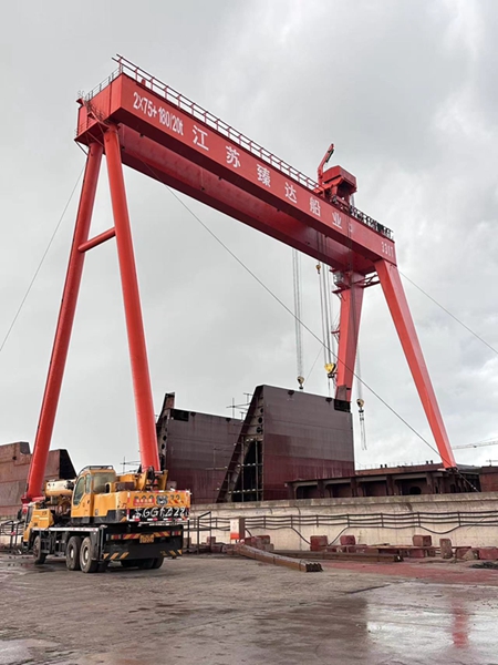 功能用途:造船門機用于船塢、露天儲料場、電站、港口和鐵路貨站等地進行搬運和安裝作業